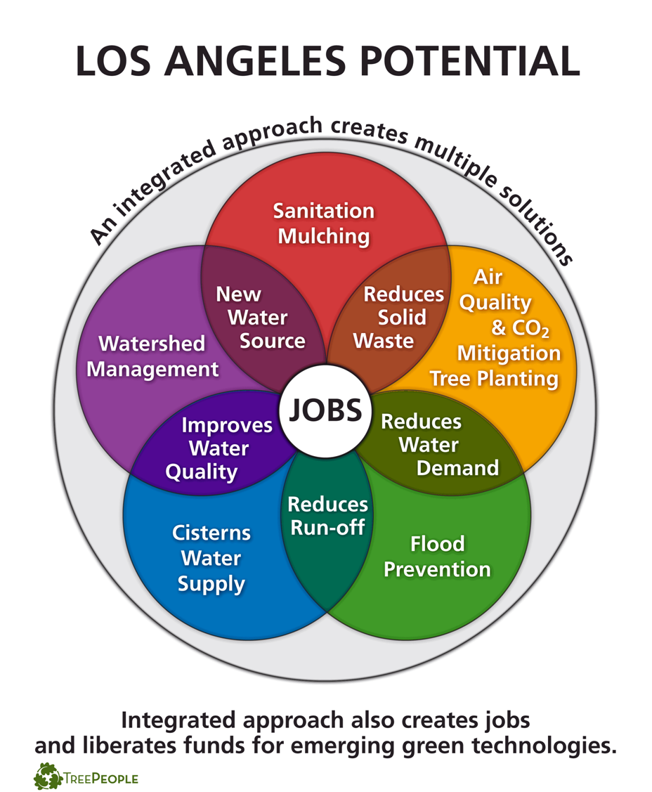Community members, businesses leaders and organizations were all invited to explore a framework for problem-solving highlighted in the video “Restoring Los Angeles: Healing the Nature of Our Cities.” Andy Lipkis from the non-profit organization Treepeople spoke of an integrated approach that helped the city of Los Angeles adopt a solution that resulted in better environmental and social benefits at a cost-savings for the city – reframing challenges into solutions.